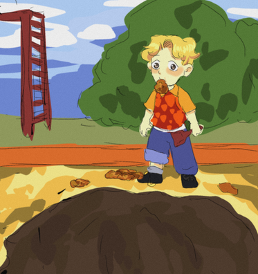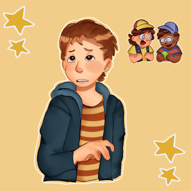 A little boy with his dinosaur toy!Something I drew for my gf :>