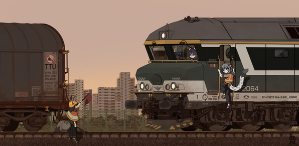 #anthro #containers #fantasy #furry #kemono #semitruck #trucks #workers #ssangyong #sy69t #container_stacker