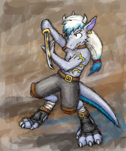 Woohoo, I'm on a roll! The sketch for this I did back in the end of June, and I rediscovered and photoshopped it again a moment ago. No prizes for guessing what I was listening to while I drew it.The character is, as you can see, named Ryuken and he's a half-dragon. Half ASIAN dragon to be excact, ergo the lack of wings. And I'd also like to point out that this is very out of character for him, he is usually the crouchiest (is that a word?) of all my characters. (Think Zelgadis with a mean twist.) I have the nagging feeling that he will pay me back for this later...
