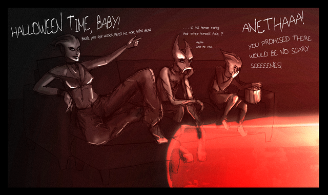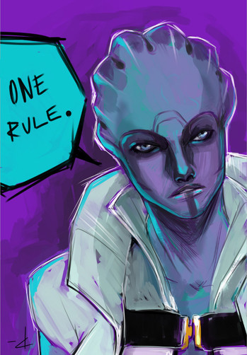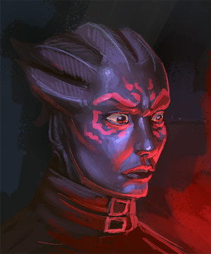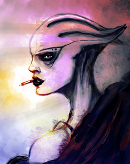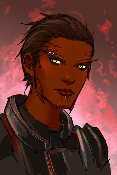 For ONCE, this character is not an OC but the magnificent Aria T'loak, ruthless ruler of Omega. She's a character I always enjoyed and found fascinating ingame, and kind of ended up having a big role in Halfway Home. I have a blast writing her and her dialogues, she's hands down my favorite character to write eeeven if she got a serious renegade points overload in this story. And I mean it. Like really.