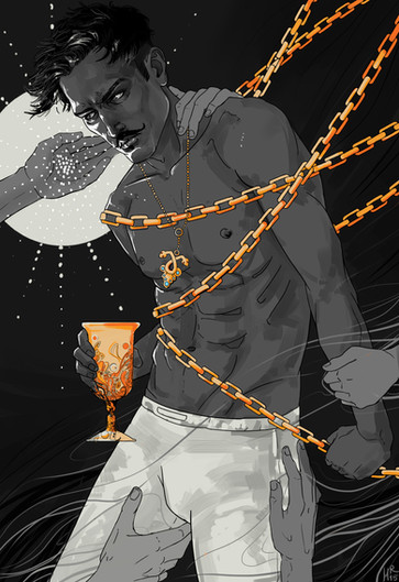 Ahhh he looks quite peeved here. Haha I'm guessing he's objecting to the chain... or the lack of clothing. I'm guessing this is from the first book?