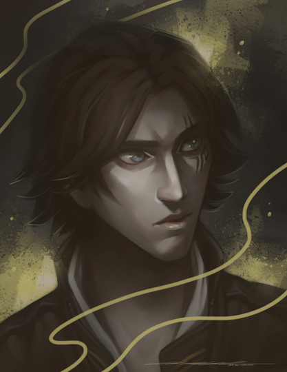 Seriously one of my favourite book series of all time. Oh my god, he looks so amazing. Really, I love how distinct you made his eyes, and the set of his coat around his neck and shoulders--and the beautiful auburn of his hair.
