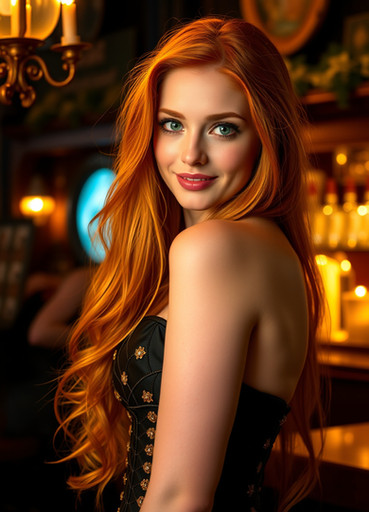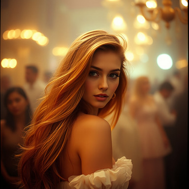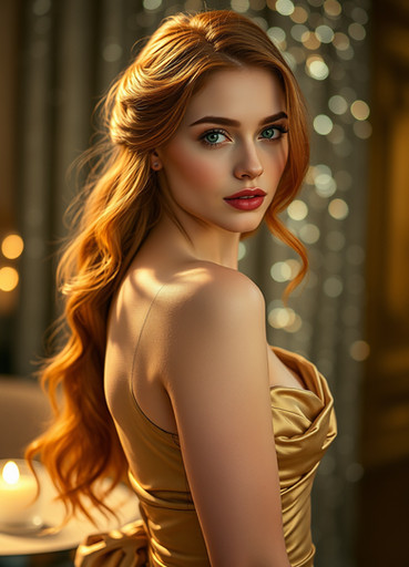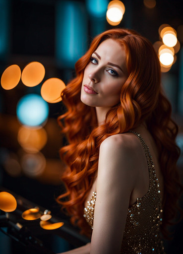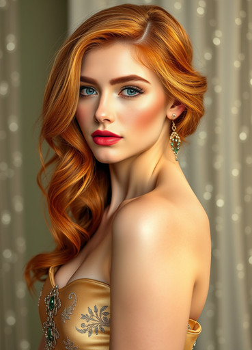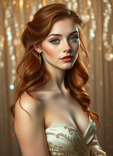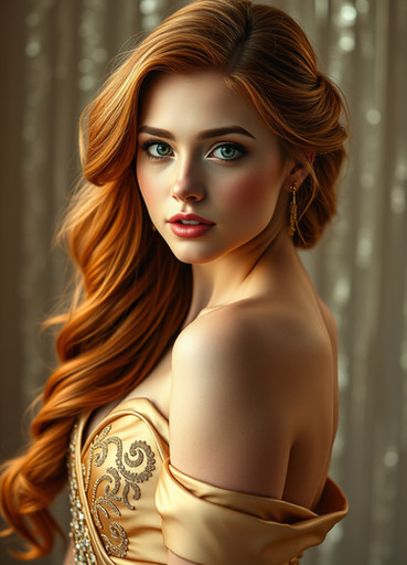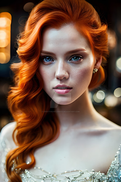 #portrait #beauty #glamour #ai #dreamup #drama #photorealistic #dress #portraitgirl #redhair #makeup #naturallight #princess
