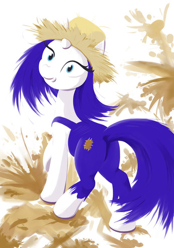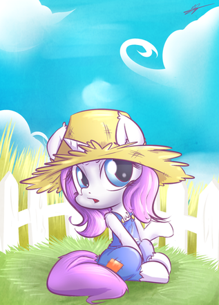 She looks cute in those dungarees and the straw hat