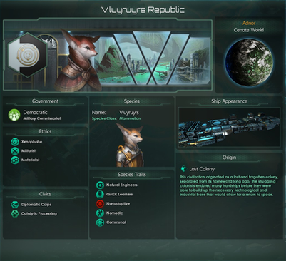 Note: this is only a placeholder made in Stellaris till I can be bothered to pay for a proper one. Do not take the above image as a final representation of the species or their homeworld. And no, Shirakami Fubuki is not in charge of the Assembly.