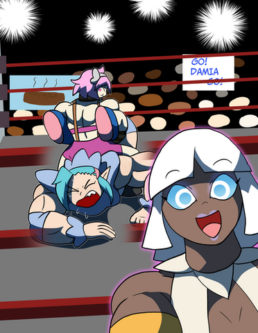 #fanart #comic #originalcharacter #musclegirl #musclegrowth #femalemuscle #gijinka #growing #pokemon #wrestle #wrestling #femalewrestling #muscularfemale #tagteamwrestling