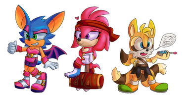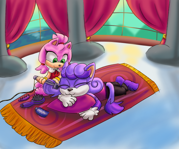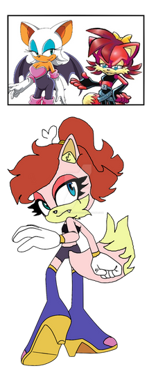 So, a while ago (like a year), I did a fanfiction shipping Rouge with Sonia (from Sonic Underground) , or rather, a pre-ship fic. Anyway, I randomly remembered it for some reason, and was inspired to draw this picture. Bad move- now I want to continue the fic -_______- (despite the crack pairing, I did it in a serious manner, and feel like I could continue it, but idk? why must I only get inspired for crack pairings -_-)I still feel like these two would get along well. I feel tempted to draw another picture of them doing something princess-y, like getting their nails done by Sonia's palace servants(post-Robotnik), or planning an attack using intelligence that Rouge has gathered(against Robotnik). In this pic, hopefully the poses aren't to ambigous... they're just hanging out, Rouge is posing flirtily, and Sonia straight-backed, blushy, and not sure how to feel. This was meant to have a background... but I got sick of it, so it's anyone's guess where they are