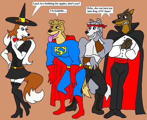 Last night, I suddenly got the urge to draw the Road Rovers in the X-Men costumes. The urge was so strong, I couldn't resist it.It started when I imagined Colleen dressed up as Rogue, and from there I started imagining who the others would be dressed up like. Blitz was an obvious choice for Wolverine, and after some thought I realized Hunter would be Gambit and Roger would be Jubilee (poor Roger