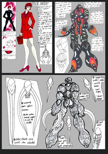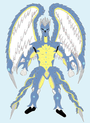 *Claws on hands & feet are razor sharp as well as the blade spurs on her forearms that can elongate to 1.75m in length & can flex up to 140cm along the fore arm, her tail can elongate into a sword that reaches 150cm with the tail being 3m in length. the tail can act as a 5th limb.