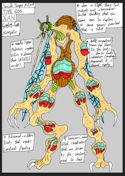 *Dwayne Mutant 8. "Sword Jaws"*An Ant-lion monster whose body is that of a mindless cloned body which makes for easy mutation designs for Dwayne, though it is a mindless automaton; once given an order it transforms into a terrifying predator who will not stop until its intended victim is torn apart, eaten or captured for a fate worse than death!!