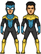Mark Grayson, son of Omni-Man.Original costumes designed by Art, next when Mark goes independent, and finally his return.
