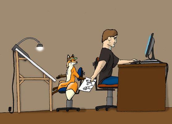 Edit: Edited a few minor things according to 's suggestions.I think a new Deviant ID would be necessary sooner or later, so... Here you go, enjoy the Metamorphox, and his fennec form and his...uhm...artistic abilities.