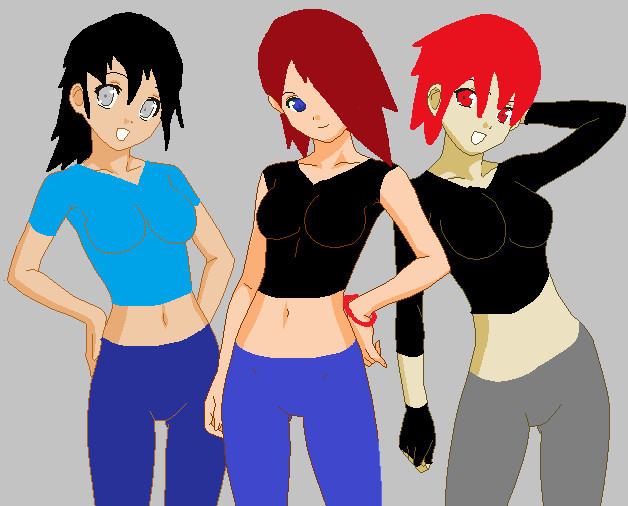 The girl on the far left is Nikki Wong from 6teen, and she was going to be part of this picture ( www.deviantart.com/metamorphst⦠) before I decided against using non-OCs in itThe other two is just me goofing around, mostly trying to get tank tops to look right. I'm not sure I've succeeded, but oh, well