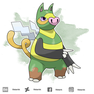 Description: They like to rebound all the creatures they find ahead, they seem to be nice, but they like to cause problems, electrocuting their opponents. They are nocturnal creatures. Contrary to what it looks like, its energy comes from its beak, which is able to produce energy, in addition, it can use eletroreception to find food and other creatures to cause problems. They can orient themselves from any place using the electric fields of the Earth. Males of this species can learn Poison attacks.