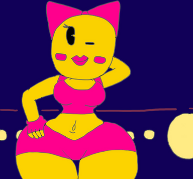 #boobs #bow #gloves #hips #melons #thighs #bigbreasts #curvygirl #mrspacman #namco #orangehair #pacman #reddress #yellowskin