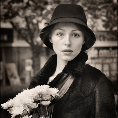 Gosto do contra-luz e da vinhetagem mas o modelo está desfocado, aparecem postes e cabos no fundo e a foto está torta.
