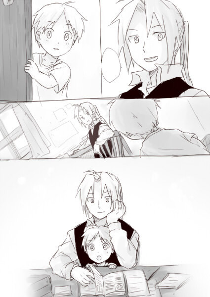...I just noticed Ed's automail leg...did he do human transmutation again? Has he not learned anything