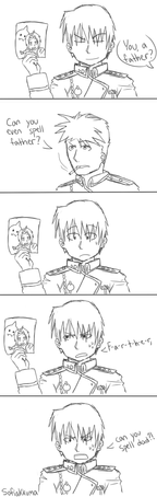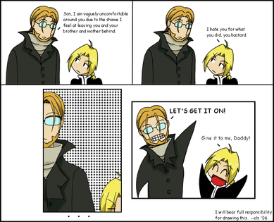 After being so mean to Roy I figured it was time to poke a little fun at Riza (not that I'm still not picking on Roy mwahaha)I sympathize with Ed here. I really do. Normally when parents do this it gets old real fast but hey it's FMA so they are the exception.