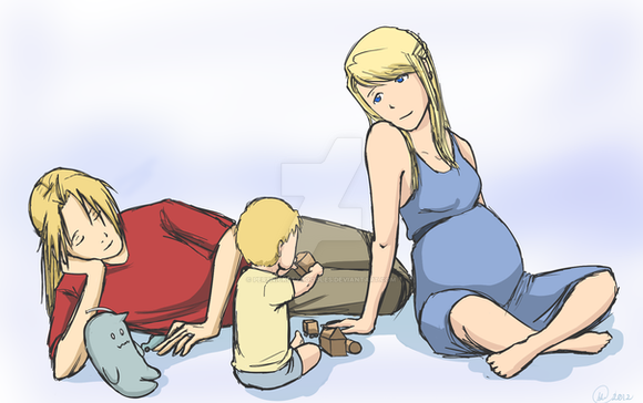 You draw such amazing Royai! I love this picture of them pillow-fighting. It's amazing. And little Maes in the corner looks so cute and confused.