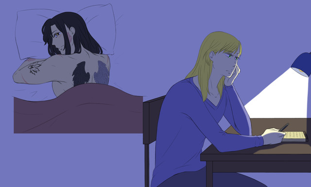 “It’s okay.” She shifted in bed, tucking the phone against her shoulder as she adjusted the pillows with her free hand, balancing Maes with the other, before settling back into them with a content sigh. “I couldn’t sleep anyway.” '- #16 - It’s Okay, I Couldn’t Sleep Anyway by ohsnapsnapsparkspark on Tumblr