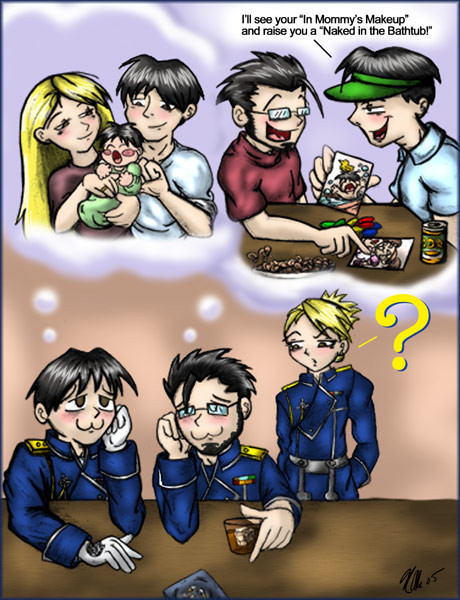 Royai baby in love with Olivier killed me! And Roy tearing up EdWin family photo in jealous rage~ You're a genius! I love these!