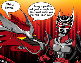 I know it's late, but better late than never. Bujin Gaim is the perfect choice for this, since he also has predatorial behavior.