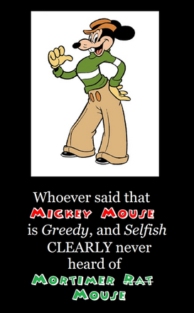 up until Charles Mintz swindled Walt of the copyrights, forcing Walt to create a NEW character from scratch: Mickey Mouse (yep, ol' Mick was "born" from Tragedy)