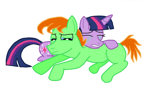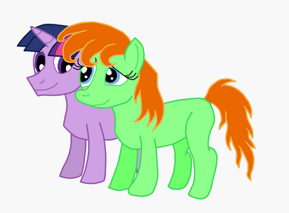 This is well drawn. Well done. I like the MLP styled effects you added like the outline. And Twilight is well drawn as if this was a scene from the show itself. The Pony OC fits right in.