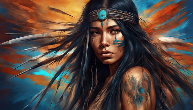 #portrait #beauty #warrior #digitalart #fantasyart #digitalpainting #portraitgirl #abstract #ai #conceptart #contemporaryart #exclusive #female #native #nativeamerican #surreal #tribal #visualart #wallpaper #woman #metshacollective