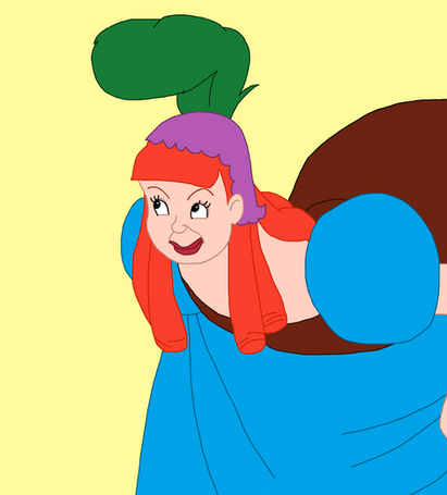 Here's yet another Red Riding Hood fattening but this time it's from the fairy tale series Simsala Grimm, based on the fairy tales by The Grimm Brothers.Traced from a screenshot I print screened from the episode from YouTube, like I did with Little Red Happy Coat. Had to do some mods from the ink drawing like fixing the sole of her left boot didn't reach out to the edge and also I thought her chest was rather small compaired to her big belly so I made it wider to fit the proportions better (quite ironic consindering my taste for teen and adult breasts, they're "out of proportion" especially when fattened up according to some, but hey, some rules you gotta follow while you're artistically free to break away from most of them). Requested by Hillygon .