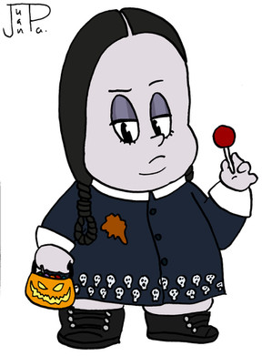 Seems like Wednesday have become her mother's daughter by indulging in food and become a nice (or mean in the terms of the Addams as everything bad is good and vice versa for them) chunky girl, getting fatter than her brother Pugsley.Wednesday Addams, The Addams Family (c) Charles Addams (characters), Warner Bros. (formerly Hanna-Barbera and Turner Entertainment, 92 series).