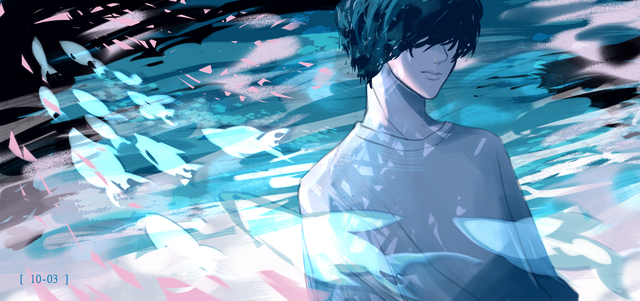 Yeah that water looks awesome. I like how you show the surface all wavy so you can see under and above and all the motion. The colouring is good too. You're really good with dark colours. Somehow you make it not muddy and also legible and cool.