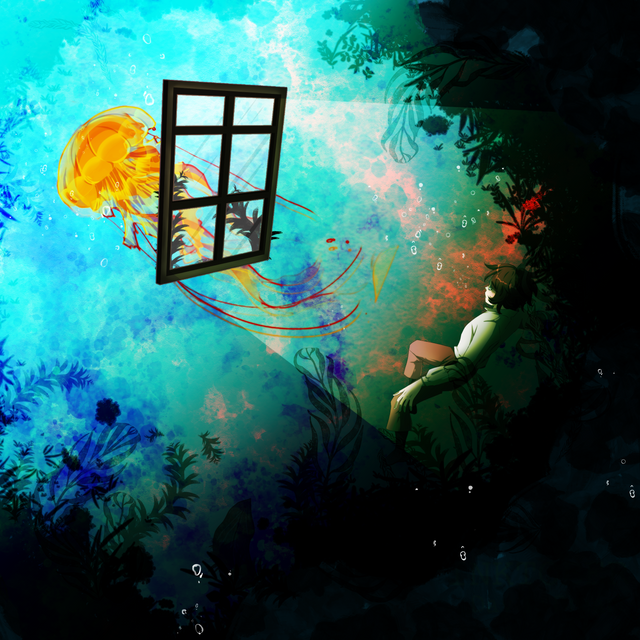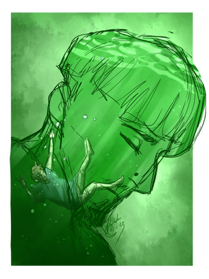 Amazing concept - I love that weird arse shit comes from dreams and then when it actually translates well on paper it's absolutely beautiful - and the execution is just over the frickin' moon, with the high saturation and contrast and things. Love the brushes you've used on the clouds and underwater. The divide between the two is striking.