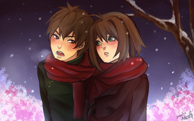 Aż mnie schłodziło dzięki temu obrazkowi, a co do pary czy to Eren x Mikasa, bo tak mi się wydaję, a nie jestem pewna >v<
