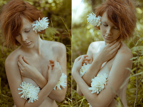 Beautiful. Model and composition. And - of course - colors. Light, white skin and "solid" leafs. Raindrops are astounding here.
