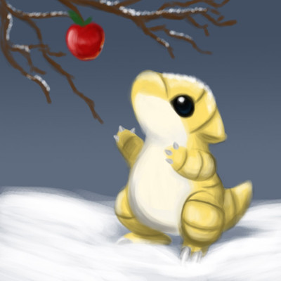 lokks like he wants to say "This is my apple, you canΒ΄t has it }:,P" xDDD cute
