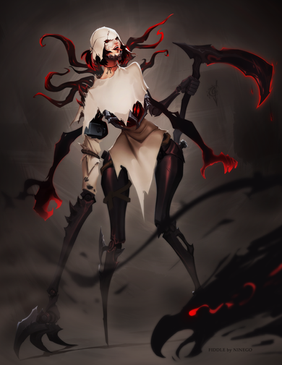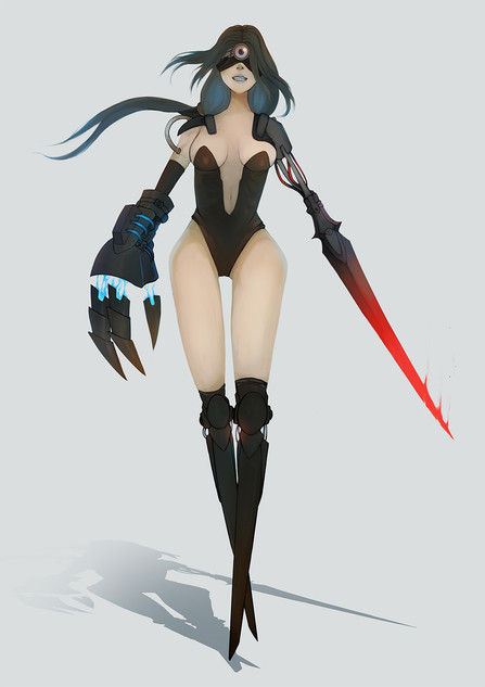 This looks really cool. I love the way you did the shading and the red lighting on her, and the eyes. Great work.