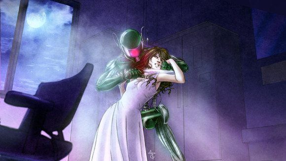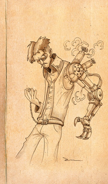 In "robotic" sketches, I basically just "go with the flow", adding random cables and panels and odd-looking machineries and stuff behind the android/robot. Sometimes it works great, but sometimes... *hangs head*