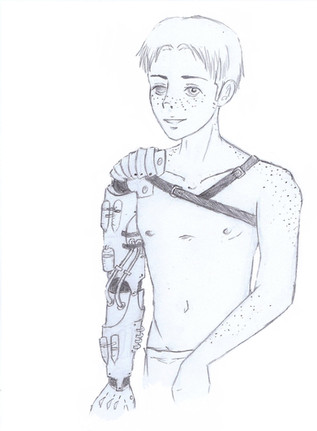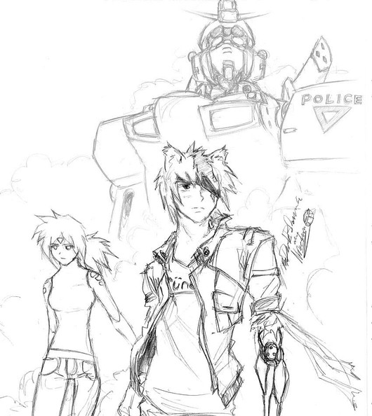 Hastily-thrown-together doodle, but still view-worthy, I guess? :]The story behind the pic: Proto got hurt (badly) to help Mega (as usual) and the Light Twins repair him in their father's Lab.
