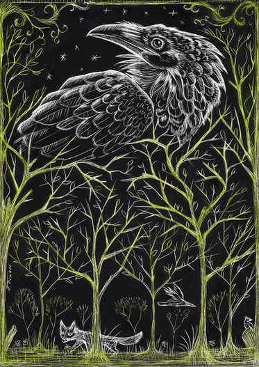 Lovely! I really like how you laid out the piece and also the little clock on the raven The style of the piece is also really nice.