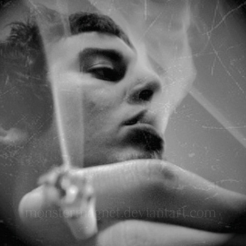 Ah... cigarettes. Bad for the body, beautiful in art. They're so photogenic and lovely, and they look perfect between someone's fingers, their lips, as does their smoke as it curls into the air. Those waved tendrils mixed with powerful image of the human form really make this an awe-inspiring bit of artwork.