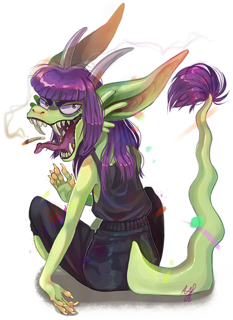 #cigarette #dragon #dragons #edgy #emo #fur #furry #fursona #girl #green #horns #lizards #oc #reptile #scalie #scaly #shaved #tounge