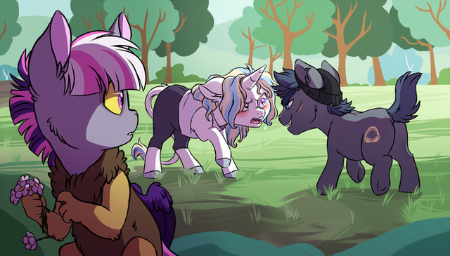 The colt really wished his mother hadn’t found him with Jona while the sensitive colt was crying. That would give anyone the wrong impression. But surely his mother of all ponies would understand his side of things. She was the princess of friendship, and his mom. Naturally she’d take his side-