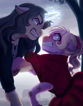 Any words of defense died on his tongue the moment Twilight shot a harsh look at him, one that had his ears pinning back against his head. It wasn’t like his mother had never gotten mad or scolded him before. But somehow, she almost appeared especially unhappy this time.