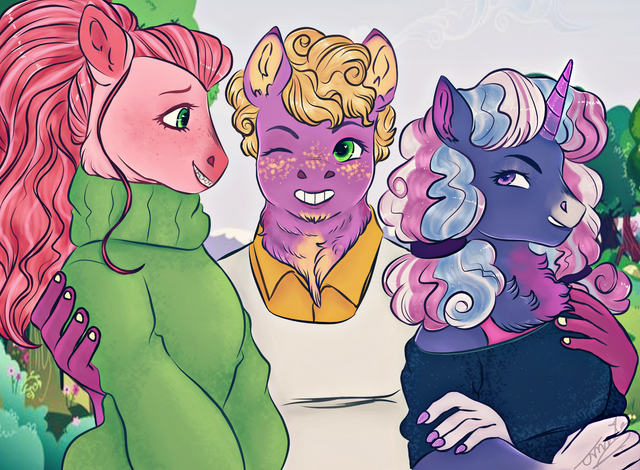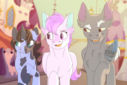 Nova relaxes a bit, but not for long. Heather tucks her closed parasol under her arm and steps forward to happily take Nova's hooves into her own. She almost misses the deliciously irked look that crosses Monochrome's face as she does.