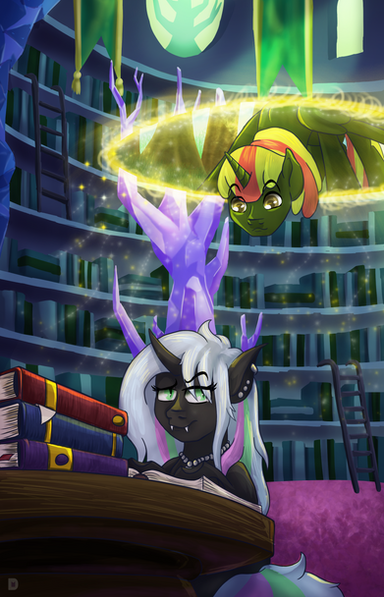 "Have any specific plans in mind for your findings?" Sunset asked curiously, setting down the gems in favor of floating over one of his journals. She flipped to a random page. Listed were the components of jadeites and their high reactivity to earth-aligned runes. "Plans or none, I know Twilight is going to be just as fascinated with this information."