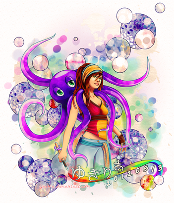 Oh, really cute! The fireworks look awesome, and so does she. Cool effects, and great art