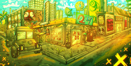 Soo.. I looked at it briefly, and scrapped up my own version that looks similar (SOB), and then I eventually someone gave me the imagery of old cobbly paths and gas lamps which led the the background.
