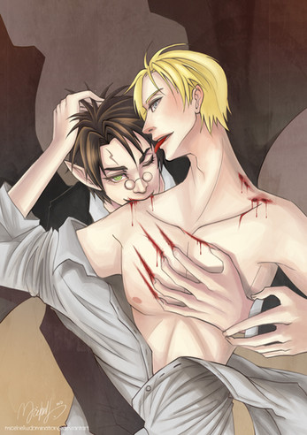 In Canon Draco is submissive, yet unable to articulate his fear and beliefs.ย Here, he's the dominant one, graspingย Harry's hands, mouth slightly open imploring if he's alright.