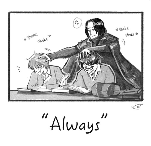 I'm not into Drarry (though this scene could either be romantic or close friends, I can kind of imagine Ron or Hermione doing something like this to comfort Harry) but it's a really interesting idea. I always thought Harry, Ron and Hermione (Harry especially) were too mentally healthy and unaffected by what happened to them during the epilogue. It nice that they all got married and had kids and had a happy life and everything but I thought it was too perfect. Harry witnessed Voldemort come back from the dead, witnessed a murder and was tortured when he wasย only 14, suffered from some pretty serious episodes of depression (especially in the 5th book, poor guy was basically suicidal) he had a psychopathic dark wizard trying to control his mind, was messing around with dark magic and almost killed someone, witnessed several more murders and then he died and came back to life. It's hard to imagine that he wouldn't have some serious issues as an adult, especially considering how he was as a teenager. Ron and Hermione went through a lot of what Harry went through as well and had their own traumatic experiences. I imagine that under their happy, successful lives they still struggle with their pasts, even all those years later.